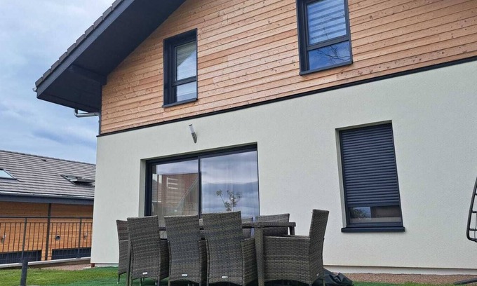 Ce logement paisible offre un séjour détente pour toute la famille. Cette maison neuve avec une vue imprenable sur les montages se trouve à 5 min du lac Léman « Plage d’Amphion », et l’Evian Golf Club, et à 15 min la station de ski "BERNEX".