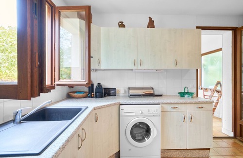 The holiday home has two bedrooms upstairs, each with a private bathroom (toilet, shower, sink). The first bedroom offers a 160x200 cm double bed with new bedding, while the second has a 140x190 cm double bed and a 90x190 cm single bed, also with new bedding. On the ground floor, you will find a fully equipped kitchen (gas stove, oven, microwave, refrigerator, washing machine, and small appliances), a dining area, a comfortable living room with TV, and an additional bathroom.