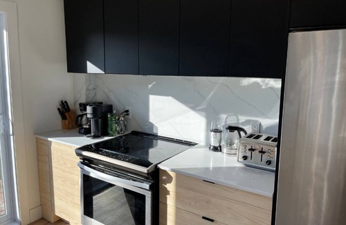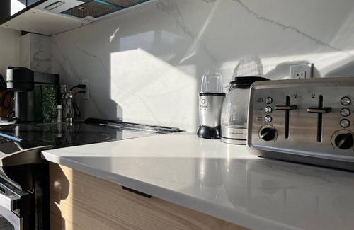 A BBQ grill, a fireplace, and air conditioning are featured at this 4-bedroom, 2-bathroom rental. Bathroom amenities include a hair dryer, towels, and toilet paper. The kitchen is equipped with an oven, a stovetop, and a refrigerator, as well as a coffee maker, an electric kettle, and a microwave. And you can even pack a bit lighter because there's a washer and dryer.