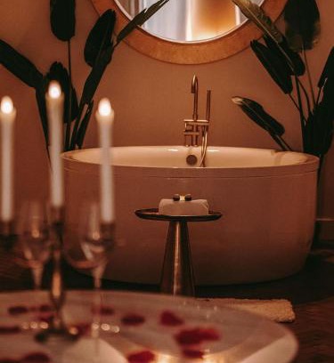 Food & DrinkTea/Coffee maker, Bottle of waterBathroomBody soap, Hairdryer, Toilet, Free toiletries, Shampoo, Conditioner, Private bathroom, Towels, Shower, Bathrobe, Spa tub, Toilet paper, BathtubActivitiesHot tubKitchenMicrowave, Electric kettle, Wine glasses, Coffee machine, Kitchenware, Refrigerator, Dining tableMedia & TechnologyFlat-screen TVGeneralHardwood or parquet floorsBedroomLinens, Wardrobe or closetRoom AmenitiesSocket near the bed |