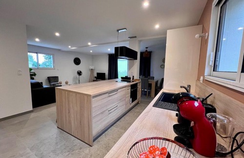 A recently renovated villa, Maison Neuve 9 personnes Terrasse & Garage Privé offers accommodations in Besançon. This property offers access to a terrace, free private parking, and free Wifi. Micropolis is 5.4 miles from the villa and Besançon Franche-Comté TGV train station is 6.8 miles away. This villa includes 3 bedrooms, a living room and a flat-screen TV, an equipped kitchen with a dining area, and 2 bathrooms with a shower and a washing machine. This villa also offers a balcony that doubles up as an outdoor dining area. The accommodation is non-smoking. Guests can also relax in the garden. Besancon Viotte Train Station is 2.4 miles from the villa, while Besançon-Mouillère train station is 3.1 miles away. Dole-Jura Airport is 38 miles from the property.
