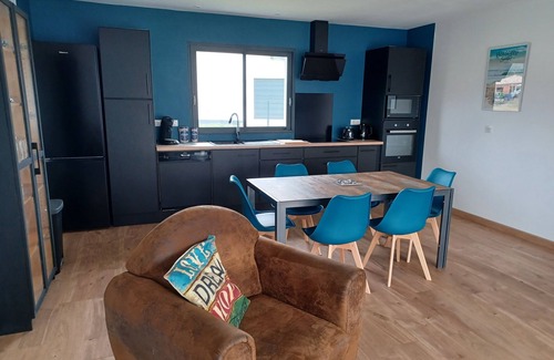 Une cuisine moderne tout équipée, 2 chambres, SDB avec douche à l'italienne, WC séparés, grande pièce salon avec TV + Box WIFI.