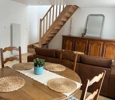 Housed in a historic building, the recently renovated Maison rénovée en pierres à la campagne features accommodations with a garden and free Wifi. With free private parking, the property is 4.1 miles from Begard Golf Course and 19 miles from Saint-Samson Golf Course. This vacation home includes 1 bedroom, a living room and a flat-screen TV, an equipped kitchen with a dining area, and 1 bathroom with a shower and a washing machine. Towels and bed linen are available in the vacation home. The accommodation is non-smoking. Ajoncs-d'Or Golf Course is 26 miles from the vacation home. Brest Bretagne Airport is 57 miles from the property.
