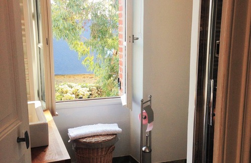 In a charming park of 3500 m2, "Le vieux Nid", fully renovated 19th-century house awaits you for a unique stay. Located 800 meters from the beaches and 200 meters from the shops, you can fully enjoy the hiking trails to discover the steep coast overlooking the bay of Mont Saint Michel. The Lude Valley and the Painters Valley are just a few steps away. The house has all the comforts of a modern home. Bus stop 50 meters.