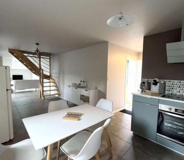 Maisonnette de charme Breton au calme-Palais des congrès et des expositions-Baie de St Brieuc offers accommodations in Ploufragan, 1.4 miles from Saint-Brieuc Train Station and 1.8 miles from Saint-Brieuc Museum of Art and History. This property offers access to a terrace, free private parking, and free Wifi. Saint Brieuc Cathedral is 2 miles away and Crinière Golf Club is 12 miles from the vacation home. The vacation home is composed of 2 bedrooms, a fully equipped kitchen, and 1 bathroom. A flat-screen TV is featured. The accommodation is non-smoking. Ajoncs-d'Or Golf Course is 14 miles from the vacation home, while Pléneuf-Val-André Golf Course is 19 miles away. Rennes–Saint-Jacques Airport is 65 miles from the property.