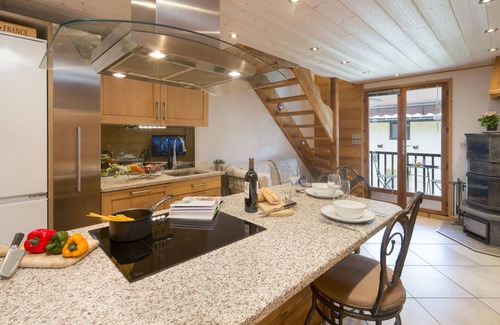 Enjoy a magical year-round getaway near Chamonix and the Les Bossons glacier; from this duplex balcony retreat for 4!