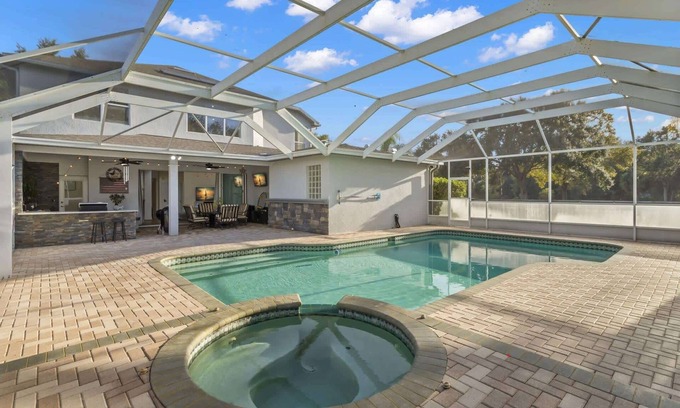 Majestic 3-Acre Heated Pool Estate ~ Scenic View ~ Events is located in Port Richey. Majestic 3-Acre Heated Pool Estate ~ Scenic View ~ Events provides accommodation, featuring Balcony/Terrace, Sports/Activities, Fireplace/Heating, among other amenities. This House features Balcony/Terrace, Sports/Activities, Fireplace/Heating, to make your stay a comfortable one.