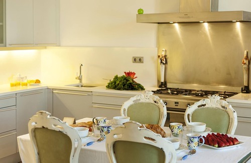The house is bright and spacious and has a wonderful mix of old and new decors to keep the tradition of the house but with modern comforts. The lounge with comfortable sofas and TV, an elegant dining area next to the big fireplace, and a fully equipped kitchen.