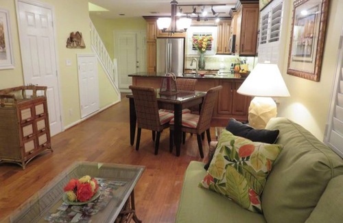 Featured in The Key West Citizen Home of the Week. Perfect location, and newly renovated with fresh paint, new kitchen with stainless appliances and granite tops. New hardwood downstairs and tile floors upstairs, all new furnishings and accessories, and private courtyard with sundeck overlooking a private park. The 2 Bedrooms are upstairs and each have their own private bath. Queen bed in owner's suite and two twins in second bedroom. Both bedrooms have a private balcony. Living room sofa makes into a queen. 1/2 bath downstairs in the living area. Free WIFI and three tvs and stereo. The outdoor courtyard is perfect for relaxing, you will not want to go inside. Lush landscaping. Just steps to the heated pool. All located in the beautiful private community of Truman Annex. Please also check out our other condo in this same community number is 3956691 same location.
