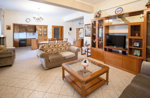 This is a spacious flat offering comfort, able to accommodate up to 4 people in 130m2 of interior space and a great terrace overlooking world famous Meteora mountains!