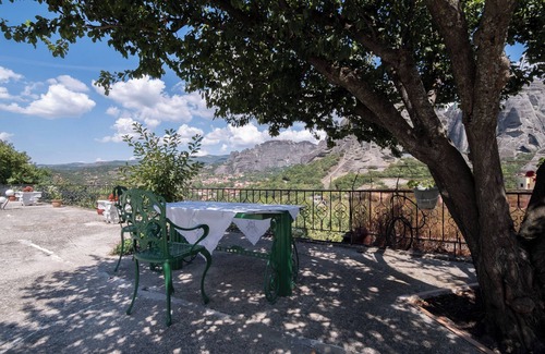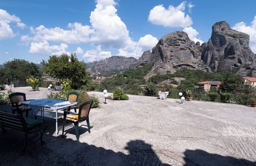 A comfortable & neat three bedroom flat with breathtaking views of the World Heritage Unesco site of Meteora! Fully equipped and able to accommodate up to 4 people in one double and two single bed bedrooms. Spacious kitchen, living room with dining area and a bathroom. Extra lounge area and terrace with direct views to the famous rocks and monasteries! Central heating, Wifi, TV.