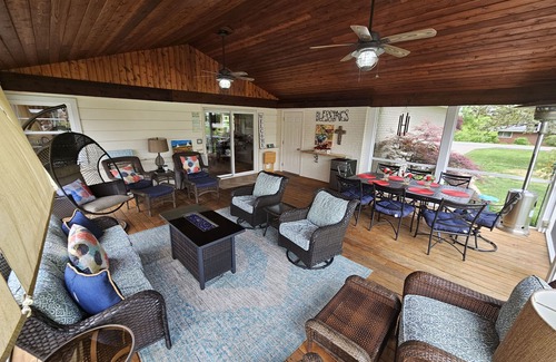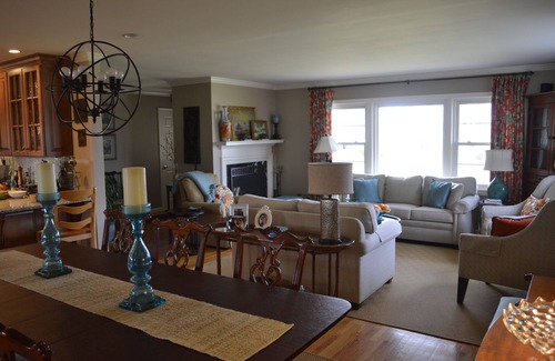 Our recently remodeled ranch in the city is close to everything. We have 3 bedrooms and 3 baths perfect for 6 guests, each bedroom equipped with room darkening shades to aid in sleeping-in (you're vacationing here, after all, so indulge). The open plan living room, dining room, and kitchen has plenty of counter space making for great entertaining. This area leads directly to our large screened porch, which is great for just relaxing anytime: morning coffee, afternoon naps, or evening cocktails. If you just need to watch TV there are several, in addition to the one in the media room all with UVerse U300 digital cable (most channels in HD). WIFI is also available.
