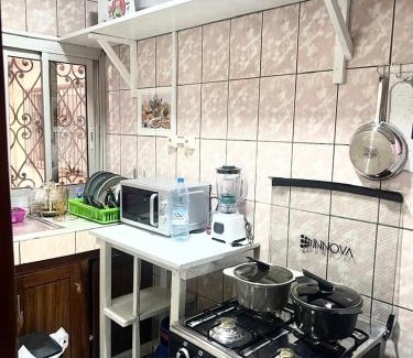Makepe Villa offers accommodations in Douala, 5.8 miles from Akwa Stadium and 6.4 miles from Port Authority of Douala. Both free Wifi and parking on-site are available at the apartment free of charge. Bonanjo Park is 6.5 miles away and Douala Museum is 6.8 miles from the apartment. The apartment is composed of 2 bedrooms, a fully equipped kitchen, and 1 bathroom. A flat-screen TV is featured. The accommodation is non-smoking. Douala International Airport is 5.6 miles away.