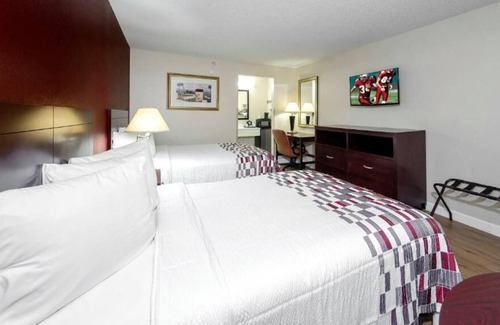 Guests love staying at this budget-friendly hotel that offers the best bang for the buck to business travelers, as well as solo travelers and those with families and kids. The property offers both smoking and non-smoking rooms, so you have the freedom to choose. This is also a pet-friendly hotel where you can stay with your pet for free! Get a bit more active by taking a splash in the outdoor swimming pool. On the other hand, business travelers have access to the property’s well-equipped business center to take care of any unfinished business priorities. Other amenities that will make your stay convenient include laundry facilities and free parking!