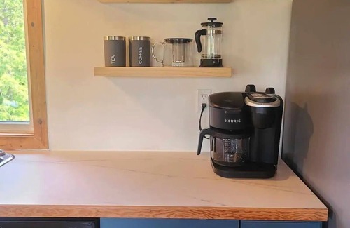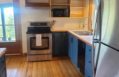 Guests have access to the outdoor space just around the home, including the propane firepit area, carport, and a small yard behind the cabin. Not included is the garage space inside building (separate entrances) or the playground below, due to insurance and liability concerns.