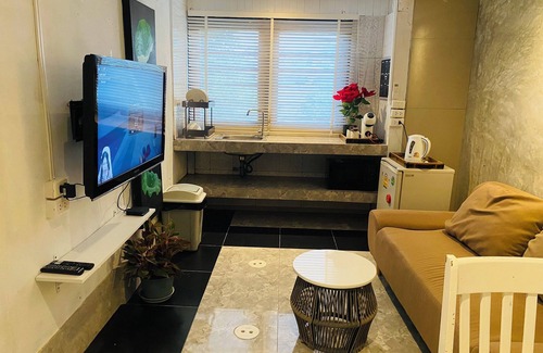 GeneralElectric kettle, Number of bedrooms - 1, Toilet paper, Square feet - 388, Separate dining area, Free bottled water, Garden view, Wardrobe or closet, Free tea bags/instant coffee, Shampoo, Bed count minimum 2, Hair dryer, Digital TV service, Kitchenette, Shared accommodation, Ping - 11, Microwave, Laptop-friendly workspace, Square meters - 36, Towels provided, Soap, Number of living rooms 1, Air conditioning, Free toiletries, LCD TV, Mini-fridge, Cookware, dishware, and utensils, Location - ground floor, Paper towels, Desk, Separate sitting area, Bed count maximum 2 |