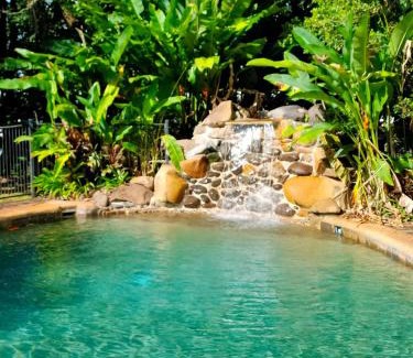 Surrounded by 11 acres of tropical gardens, the Malanda Lodge offers an outdoor pool and a poolside cocktail bar. A 15-minute walk from Malanda Dairy Center, the motel provides free parking on site. Air-conditioned guest rooms feature access to a shared balcony which comes with views of the garden. Amenities include satellite television, tea/coffee making facilities and a fridge. The property has a creek with platypus in it. A coin-operated laundry service is available. The staff at the 24-hour reception is able to assist guests with their needs. Malanda Lodge is 6.2 mi from Lake Eacham and 12 mi from the Lake Barrine. The Curtain Fig Tree, one of the largest trees in Tropical North Queensland, is 17 mi away.