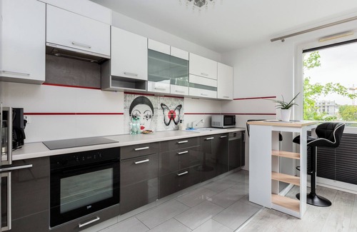 Malczewskiego Chic Studio is a stylishly furnished apartment featuring a living room with a sofa bed and a kitchenette, a bathroom, and a spacious balcony where guests can relax and enjoy their morning coffee or evening glass of wine. It offers a range of high-quality amenities, including free WiFi, cable TV, washing machine, hairdryer, iron, dishwasher, oven, fridge with freezer, microwave, drip coffee maker, and kitchen accessories. Guests also have a parking space in the underground garage at their disposal.