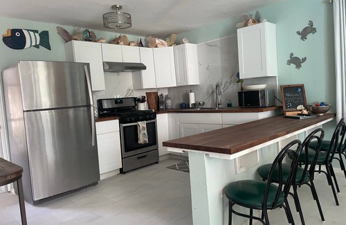 Villa Pesquera is a beautiful beach and fishing town area located in Patillas. This popular location called the Malecon, has public showers, bathrooms, volleyball court, kids playground, boat ramp, restaurants, 6 kiosks (walk-up bars), outdoor beach rentals, fresh fish and a nature reserve you can explore. This rental is for the first entire floor that contains 2 bedrooms, 1 bath, 1/2 outdoor bath, full kitchen, livingroom, private entrance, secure gated private parking for 1 car and an amazing backyard with outdoor fireplace, BBQ, and bar. The upstairs unit is for my wife and me. We are here to help our guest if needed. We have a beautiful English Bull dog, if you like to meet her just let us know.