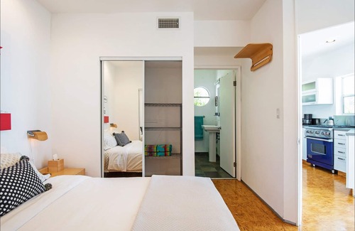100% cotton hotel grade bedding and towels are provided and we use only natural, chemical and fragrance-free detergent, soaps and cleaning supplies. Full laundry and storage facility for luggage is adjacent to the pool house and is specifically for guests' use. An Apple TV, Harmon Kardon wireless speaker and strong Wifi are provided. The pool house is also stocked with board and card games, an extensive library of books on Los Angeles and Southern California architecture and history, and binoculars for bird and whale watching. The pool house is the perfect place to decompress and soak up the magical surroundings.