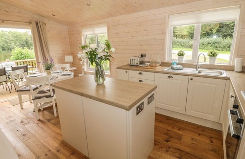 Amenities: Gas central heating with electric flame effect stove, Oven, Microwave, fridge, freezer, washing machine, dishwasher, 1 x Smart TV with Freeview, 2 x TV with Freeview, radio, WiFi. Fuel and power inc. in rent. Bed linen and towels inc. in rent. Highchair and travel cot are available on request. Off-road parking for 3 cars. Decked balcony with furniture. Private lakeside garden and private hot tub on a patio. No smoking is permitted. Shop 1.5 miles, pub 10 mins walk. Note: No BBQs allowed. Note: Life jackets are provided for children. Note: Alternative bed arrangements need to be requested one week prior to arrival. Note: this property takes a £250 Good Housekeeping Bond. Anglers are expected to have the appropriate fishing license and have experience in coarse fishing with the necessary tackle (barbless hooks only)