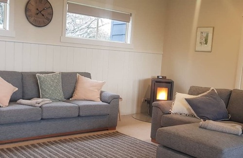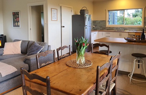Self-contained two-bedroom cottage in beautiful garden, with spectacular views of Table Cape and Bass Strait, just at the top of Boat Harbour beach. 2 acres of private garden and a vineyard surround the accommodation, along with an orchard laden with walnuts and fruit. Enjoy fresh farm eggs and hand-made granola for breakfast. Stylish new kitchen, free Wi-Fi, cosy wood pellet fire, quality furnishings, spa, deck with Weber Q and private entrance complete this enchanting family or couples' retreat.