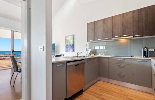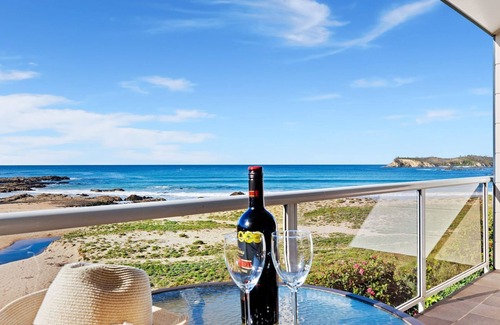 Absolute beachfront apartment, providing stunning ocean views, not only from the balcony, but also from the two queen size bedrooms, and even the kitchen sink.