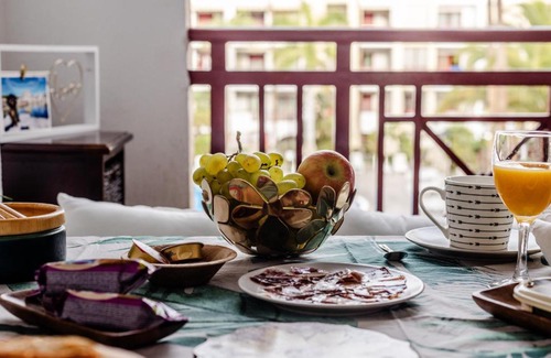 Providing a garden, Mambo Palm-Mar apartment provides accommodations in Palm-Mar. This beachfront property offers access to a balcony, free private parking, and free Wifi. The apartment features an outdoor swimming pool, fitness room, and an elevator. Accommodation for disabled guests is also available at the property. Featuring a terrace and pool views, the spacious apartment includes 1 bedroom, a living room, cable flat-screen TV, an equipped kitchen, and 1 bathroom with a bidet and a bath. Towels and bed linen are available in the apartment. The accommodation is non-smoking. Arenita Beach is a 12-minute walk from the apartment, while Aqualand is 6.9 miles from the property. Tenerife South Airport is 11 miles away.