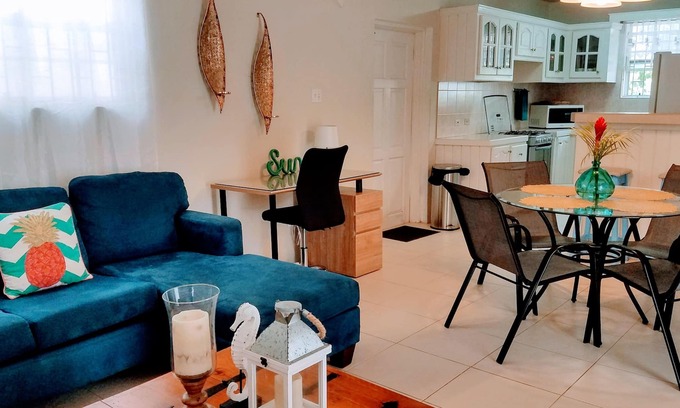 Mangoville has 4 charming condo suites nestled in Maxwell Terrace with ocean inspired suites. This coastal themed condo suite is conveniently located within 1 minute walking distance to public transportation, easy access to St. Lawrence Gap, Accra beach, Board walk, popular Browns Beach and Bridgetown. Banking, grocery shopping, convenience stores and medical clinics are all within walking distance.