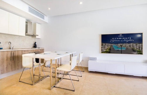 Cozy flair apartment located in Mangroovy Residence - a tranquil area of ElGouna - ready to entertain you all year long with beach vibes under the sunbeams.