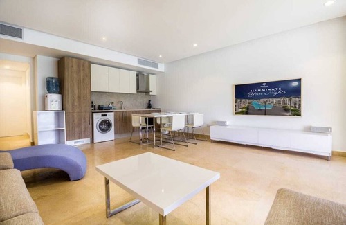 The apartment has a lavish finish and modern technology add-ons. It is situated 500 meters (6 mins walk) from the private beach with easy access to all surrounding hotspots and facilities.