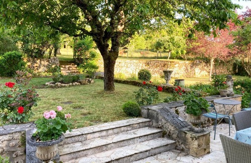 Relax on the large stone terrace soaking up the sun or make the most of the shady awnings as you enjoy al-fresco Périgord feasts accompanied by good local wine from the many Bergerac vineyards nearby. The private garden is simply idyllic, like a step back in time – admire roses, hibiscus, apple and cherry trees as you wander along its different levels with rustic stone steps. The garden is not overlooked and opens out to rural farmland and countryside so typical of the Périgord - it is truly your very own peaceful paradise.