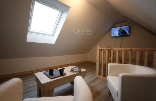 Providing garden views, Manoir Pors Braz B&B in Commana offers accommodations, a garden, and a terrace. This bed and breakfast provides free private parking, bicycle parking, and free Wifi. Lampaul-Guimiliau Parish Close is 5.1 miles from the bed and breakfast, and Saint-Thégonnec Parish Close is 8.4 miles away. At the bed and breakfast, all units come with a wardrobe, a flat-screen TV, a private bathroom, bed linen, and towels. A fridge and kettle are also provided. The rooms are equipped with heating facilities. A selection of options including fresh pastries, pancakes, and fruit are served for the continental breakfast. Brest Bretagne Airport is 25 miles away.