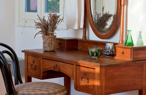 The wonderfully located Manona's Suite has a warm and welcoming atmosphere. Simple traditional furnishings are brought to life with some lovely imaginative touches giving it a real home-from-home charm. Doors from the living area lead out onto the two glorious private terrace with spectacular views across the water to Ithaca, legendary home of Odysseus. There is plenty of room to lie back and dream of the Greek Gods or to sit and enjoy a leisurely lunch or romantic dinner under the stars. The beautiful gardens surrounding Manona's Suite, are brimming with colour: bougainvillea, plumbago and geranium tumble into one another, all lovingly tended by the owner, giving the place an authentically Kefalonian feel.