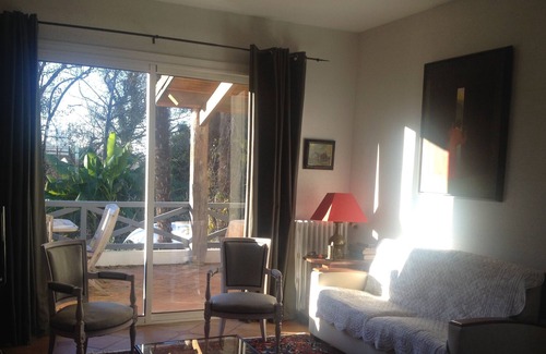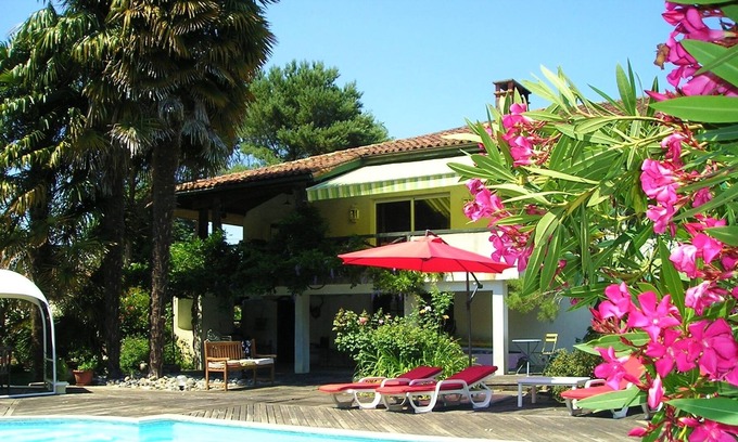 (Text automatically translated) Ideally located, very quiet, this large comfortable house has a neat decoration with family furniture, oriental carpets etc.. Two bedroom suites have a bathroom privative.Cette property is ideal for large families with children or a group of friends. His shady park, south facing terrace with electric awning, solarium of 150m2 on the edge of the large pool and plancha will guarantee moments of warmth and rest inoubliables.La near our typical Landes village with all the shops you will not use your car during your stay if you wish.