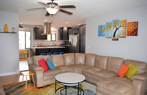 You might look at this listing and think to yourself "WOW, what a cool party pad!" FAR FROM IT. This property is designed for larger families or friends getting together to have a good time WITHOUT disrupting the neighbors or violating the 10 PM city noise ordinance. This place is meant for you to come, relax, enjoy each others' company as well as the city of Lake Havasu. It's furnished in a way that encourages your kids to stay enterained with the indoor and outdoor games, swim, and just be outside instead of vacationing just to stay in their room and play Call of Duty, Roblox, or watch TicTok all day. It is not a place for you to throw a rager, yell at your boyfriend at 2 AM that you hate him, test your alcohol consumption limits, or give the neighbors a show in your birthday suit. All renters MUST be respectful of the neighbors and be able to follow 2 main rules: 1) Outside noise must be kept to a minimum after 10 PM. 2) Do not park across the street on the neighbors property. To those that can follow these (SIMPLE) rules, we welcome your booking and truly hope that you make beautiful memories here! To those of you that can't give respect to our neighbors and abide by the city noise ordinance, this is not the place for you. You can thank previous dumba$$ renters for the strict enforcement of these rules.