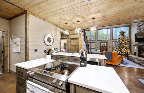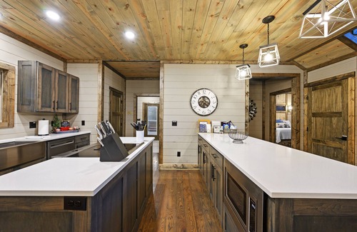 Downstairs, one King Master Suite and one King bedroom with ensuite bathroom offers the ultimate in vacation relaxation. A half bath is also located downstairs for all of the cabin guests.