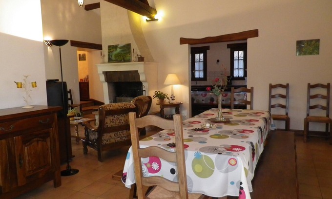 Cottage in the countryside in a small quiet village. House of 150 m2 with fitted kitchen (dishwasher, oven, microwave, fridge, freezer). A large living room, 4 bedrooms: 1 with a double bed and 1 single bed,