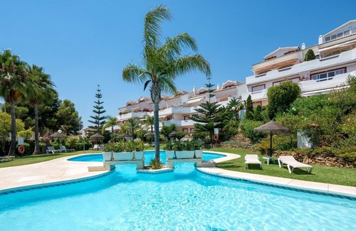 Situated a mere five minutes stroll to the beach, the penthouse it is superbly placed for your beach holiday. There are many restaurants and a supermarket within five minutes walk, so you do not need to drive. For the golfers amongst your party it is only a five minutes drive from Cabopino Golf club; something to suit all the family!