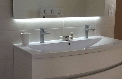 1st floor: bedroom 20m², 160cm bed, (possibility to add baby cot 60/120, wood), flat screen TV, bathroom 9m², large basin 120 cm, (2 taps), WC,