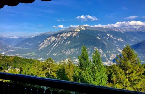 "Marigny Andolla 23", 3-room apartment 80 m2 on 4th floor. Spacious, comfortable and tasteful furnishings: large living room with cable TV and flat screen. Exit to the balcony. 1 room with 1 french bed (160 cm, length 200 cm). 1 room with sloping ceilings with 2 beds (90 cm, length 190 cm). Open kitchen (oven, dishwasher, 4 induction hot plates, toaster, kettle, freezer, electric coffee machine, Capsules for coffee machine (NESPRESSO) extra, raclette grill, combination microwave, fondue Set (chinoise, cheese)) with dining table. Bath/WC, shower/WC. Large balcony 15 m2, south facing position. Balcony furniture. Very beautiful panoramic view of the mountains and the valley. Facilities: iron, hair dryer. Internet (WiFi, free). Please note: non-smokers only.