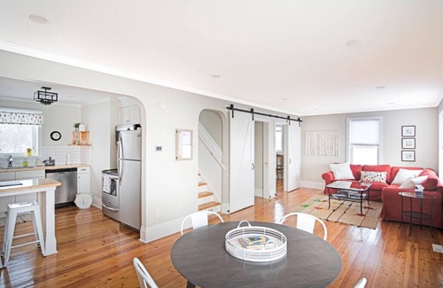 Marigold Cottage features a full kitchen, 2-and-a-half bathrooms, a living room and bonus room, and 2 bedrooms with sleeping accommodations for up to 6 guests.
