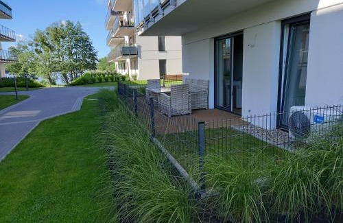 Marina Green Iława - widok na jezioro, ogródek z tarasem, podziemny parking, nawet 6 łóżek | Apartment in Iława