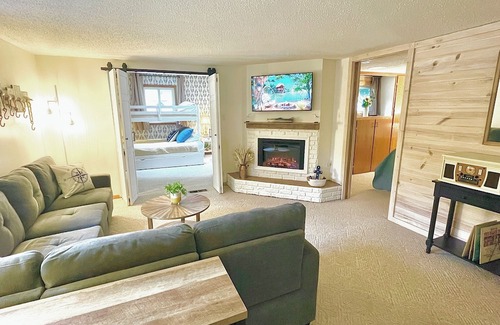 VOTED #1 BY USA TODAY, LUDINGTON WINS THE TRAVELERS CHOICE AWARD! The Marina Lake House is a 5 BDRM/2 unit home overlooking Lake Hamlin for 14 guests, only 10min from Lake Michigan beaches! Both units w/full kitchens, living areas, bath/shower, linens/bath towels. Guests receive 40% off our pontoon rental across the street at Barnhart’s Marina! Parking for 8 cars(5 if bringing own boat & trailer)BBQ, fire pit, smart TV’s, internet, picnic table, 2x washer/dryer & boat launch down the street.