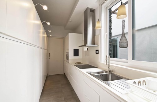 In the vitroceramic independent kitchen, refrigerator, microwave, oven, freezer, washing machine, dryer, dishes/cutlery, kitchen utensils, coffee machine and kettle are provided.