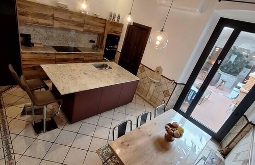 Fully equipped independent kitchen with direct access to the inner patio and chill-out area