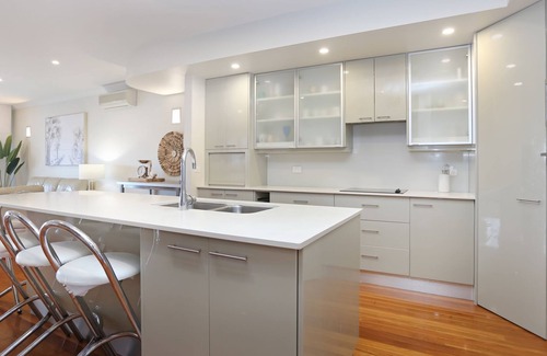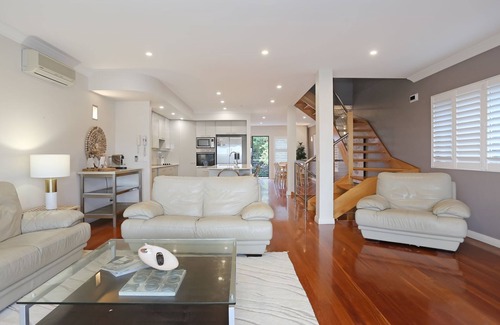 Close to several leisure spots, this tranquil getaway serves a unique blend of relaxation and excitement. A short walk will take you to popular restaurants, boutique shops, and the magnificent Hawks Nest Beaches.