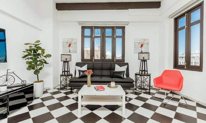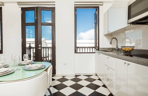 Nestled in the 500-year-old historic Spanish colonial city of Old San Juan, Mario's Old San Juan Flat is the ideal basecamp to explore Old San Juan history, restaurants, shopping, and nightlife. The suite has 1 bedroom, 1 bathroom, a modern and simple kitchen, and a balcony overlooking a plaza. You will love the combination of old-world colonial structural design and new world amenities such as air conditioning throughout the villa, wifi, TV, and modern yet simple decor. The location is ideal for those looking to be close to the action in Old San Juan, next to restaurants, a plaza, and all that you need to see in this beautiful historic city. The suite comfortably sleeps 2 adults in the bedroom's queen bed. The master bedroom has a beautiful balcony that overlooks a plaza, great for people watching and relaxing.