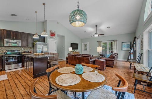 Designed for comfort and connection, Mariposa Moon Cottage welcomes up to six guests with an inviting open floor plan that makes gathering easy. The fully equipped kitchen is ready for home-cooked meals, whether you`re flipping pancakes in the morning or grilling on the propane BBQ out on the deck. And that deck? It’s big, breezy, and just waiting for you to sit back with a drink in hand.