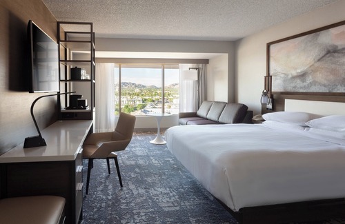 Marriott Phoenix Airport offers 347 accommodations with video-game consoles and complimentary bottled water. Each accommodation is individually furnished and decorated. Pillowtop beds feature premium bedding. Smart televisions come with premium digital channels and Netflix. Bathrooms include slippers, complimentary toiletries, and hair dryers.